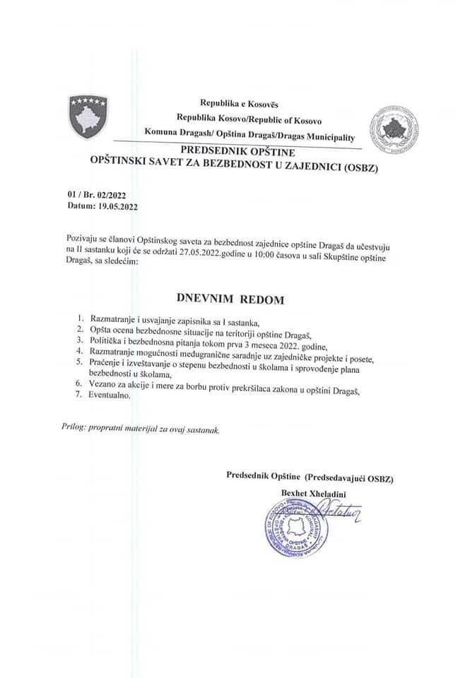 6) Rreth veprimeve dhe masave për luftimin e shkelësve të ligjit në Komunën e Dragashit.
